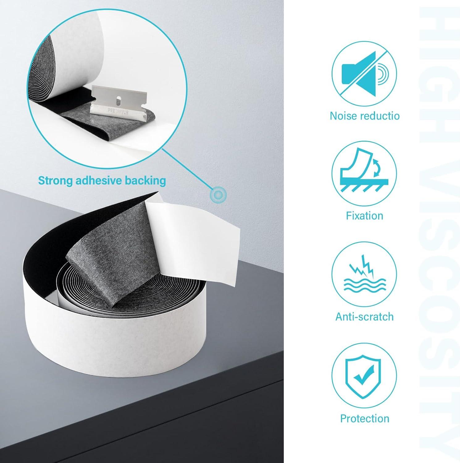 【SIZE & FUNCTION】196.9 inch (L)x 1.6 inch ( W) felt strip with white color, easily matching any flooring and decor Dust proof, shock-absorbing, sound and heat insulation, anti-skidding and insulating, widely used in various door seal, window insulation, furniture, electrical cabinets, cars, speakers, toys, sports equipment and more.